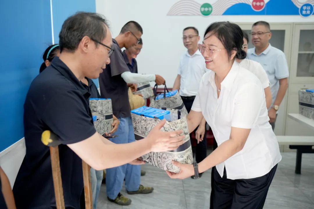 活動最后,大禹電氣公司準(zhǔn)備了100件慰問物資并現(xiàn)場發(fā)放給殘疾職工,讓殘疾職工在炎炎烈日下感受到清涼。